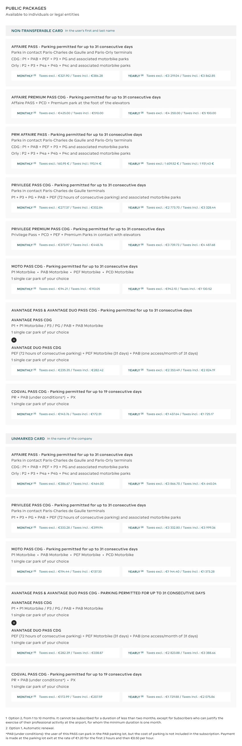 (1) : may not be taken out for a period of less than two months, except for subscribers who can prove that they work at the airport, for whom the minimum period is one month.