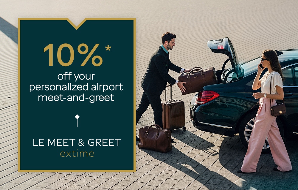 From April 1 to 30, to celebrate the launch of online booking for Extime Meet & Greet, enjoy 10% off all personalized airport meet-and-greet services. Private transfers from Paris to Paris-Charles de Gaulle or Paris-Orly, departure assistance with a dedicated agent, tax refund assistance, luggage handling…