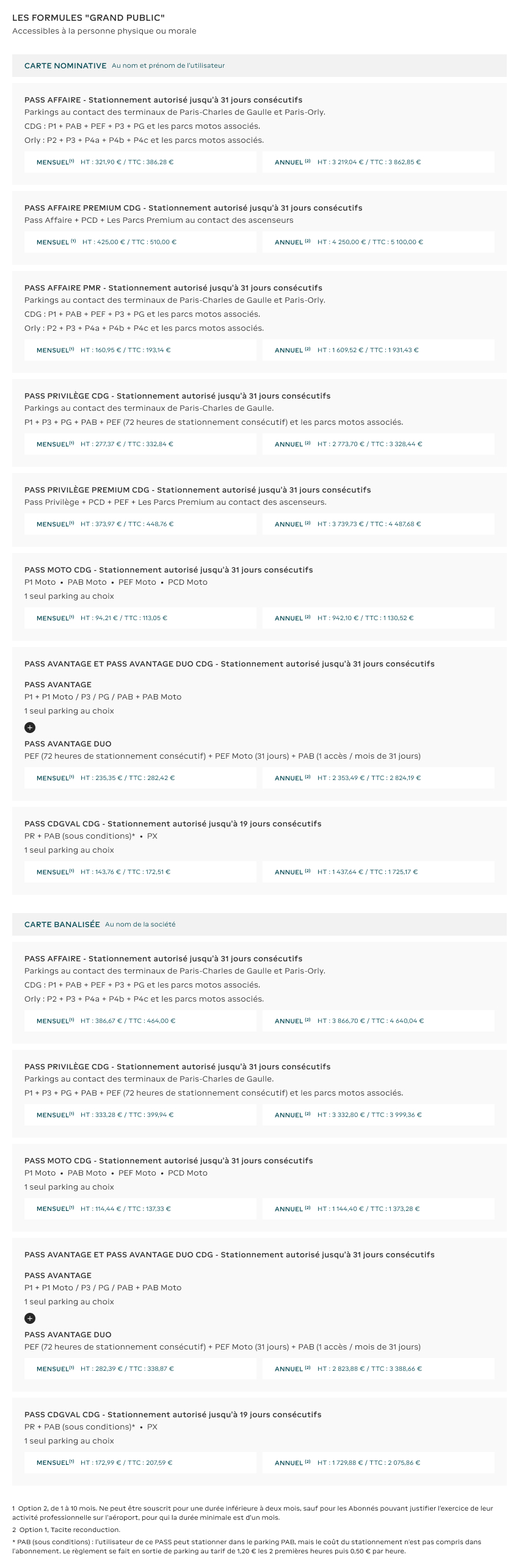 (1) ne peut être souscrit pour une durée inférieure à deux mois, sauf pour les Abonnés pouvant justifier l’exercice de leur activité professionnelle sur l’aéroport, pour qui la durée minimale est d’un mois.
